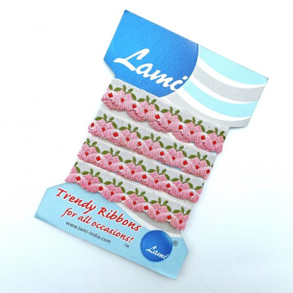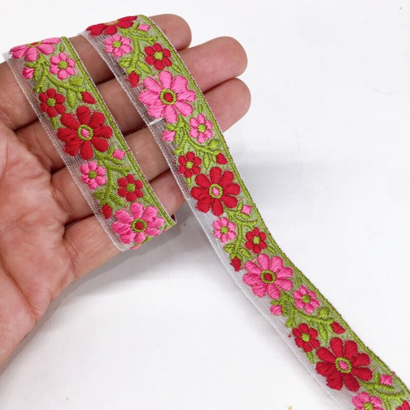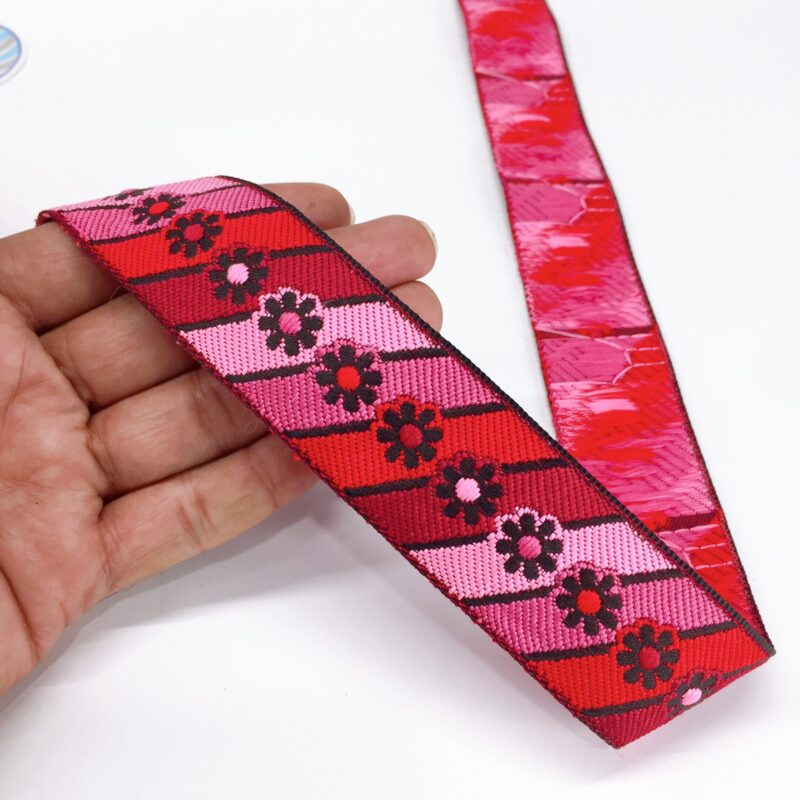 20mm pink and maroon Organza back flower creeper Jacquard trim