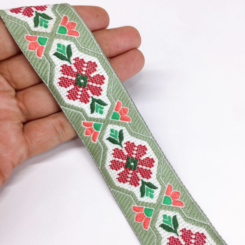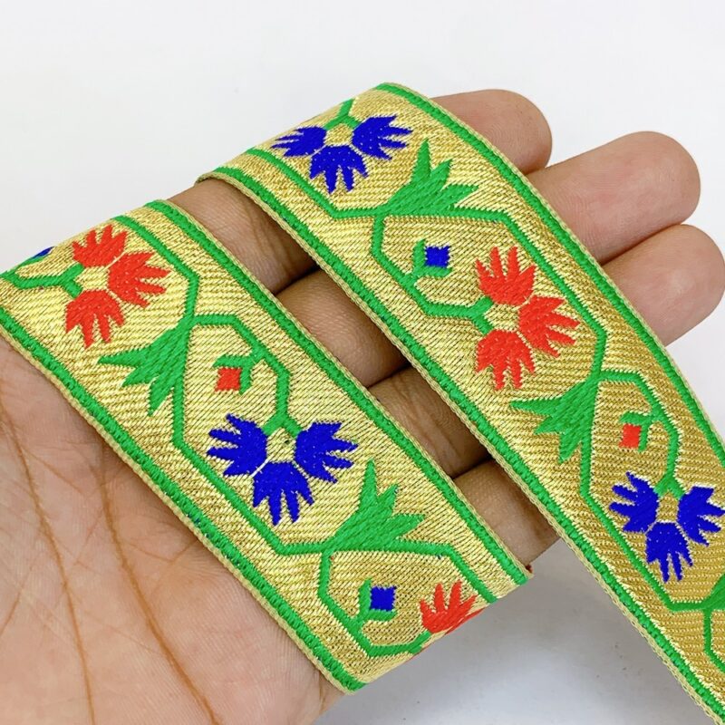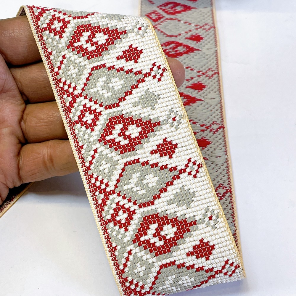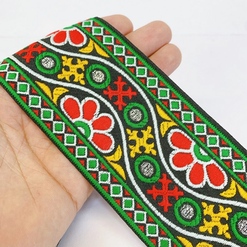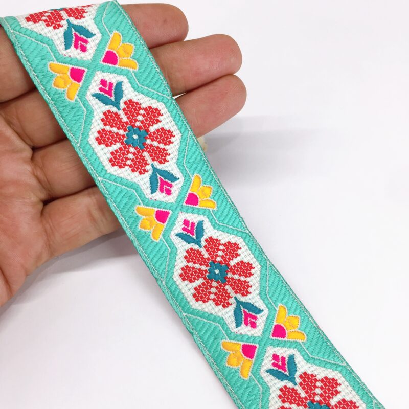 48mm Woven Jacquard Tulip Ribbon | Floral Garden Ethnic Trim | 1.9-Inch Multi-Color Jacquard Border for Boutique Fashion