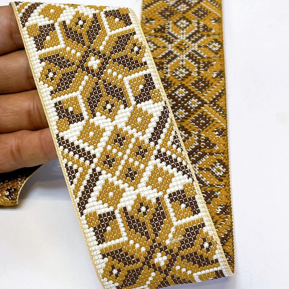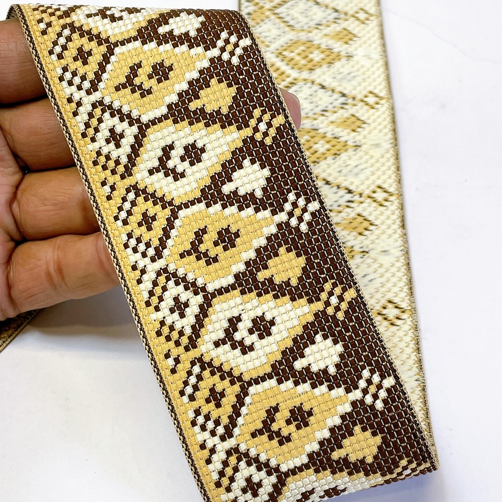74mm Premium Woven Jacquard Paisley Ribbon | High-Density Ethnic Trim | Paisley Border for Garments and Accessories