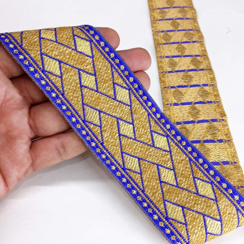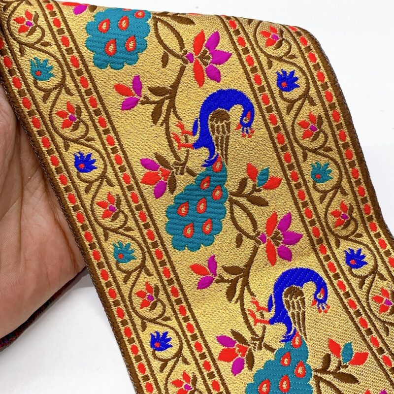 95mm Designer Golden Zari Banarasi Jacquard Lace