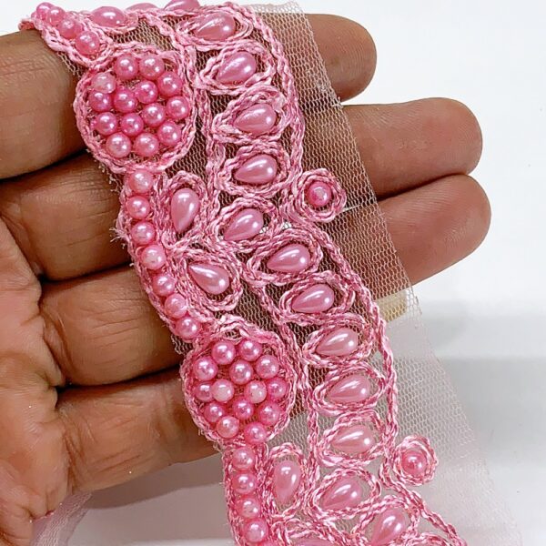 25mm Elegant Pearl & Mirror Embroidered Lace
