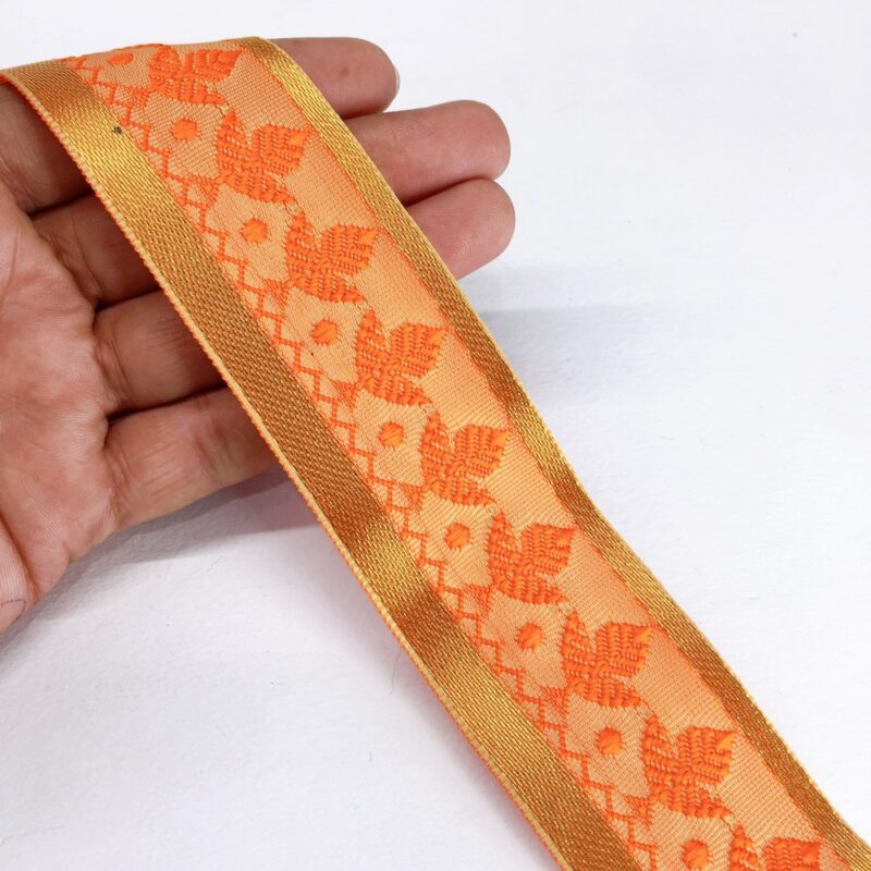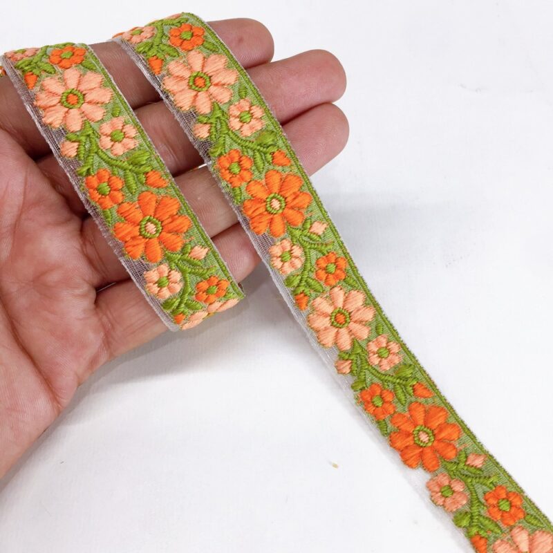 20mm peach and orange Organza back flower creeper Jacquard trim