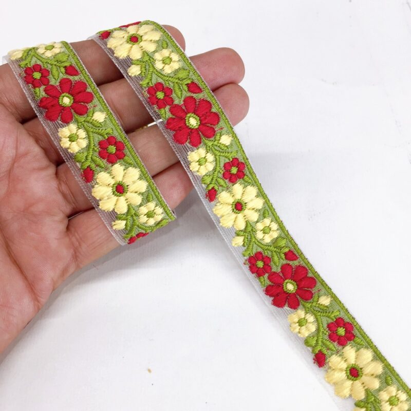 20mm yellow and maroon Organza back flower creeper Jacquard trim
