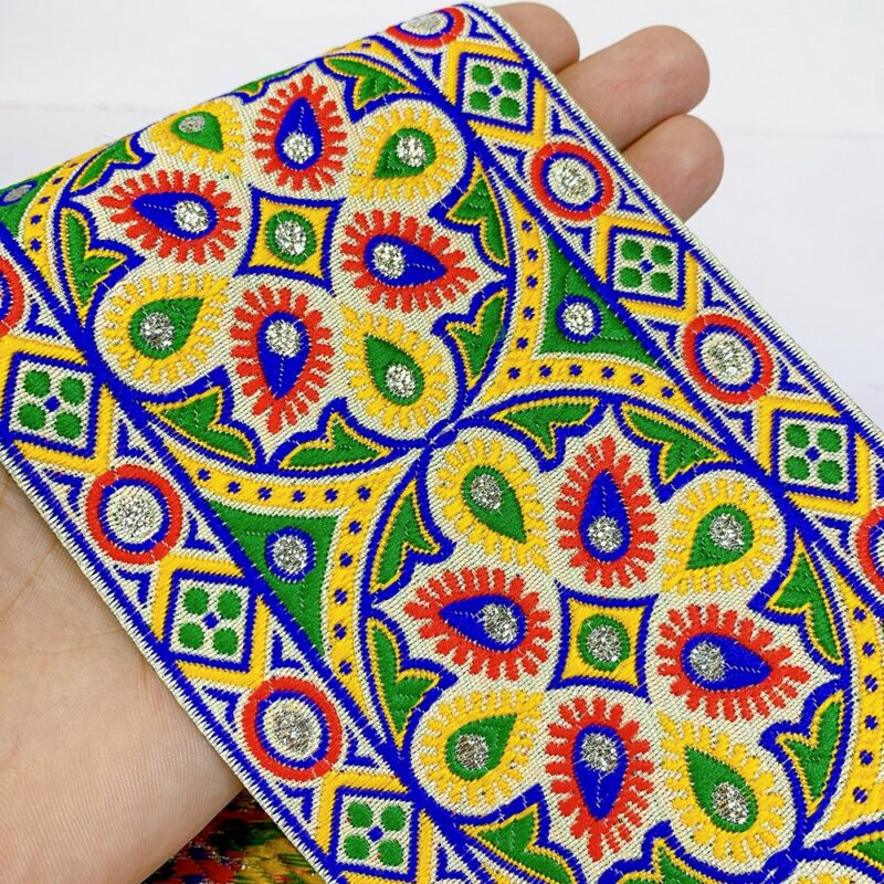 30mm Colorful Mirror Work Floral Embroidery Trim? 1 Meter Pack