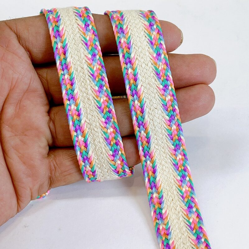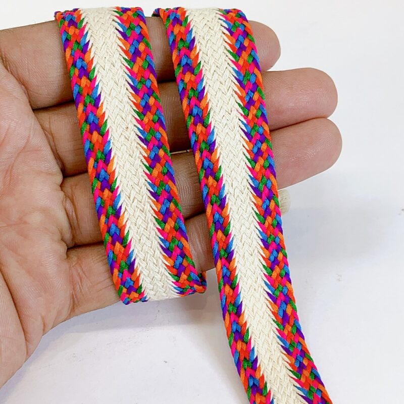 22mm Multicolor Braided Trim Ethnic Lace for Garments & Crafts