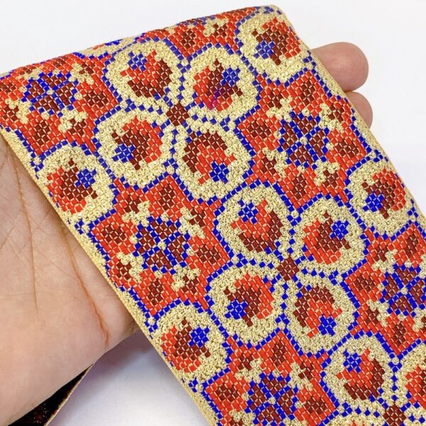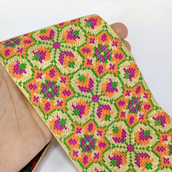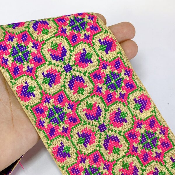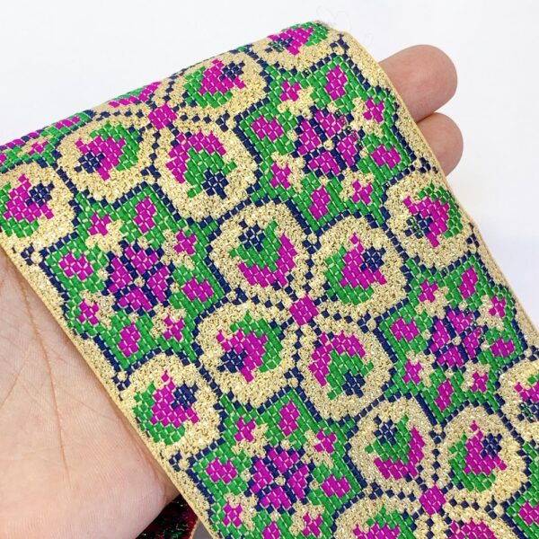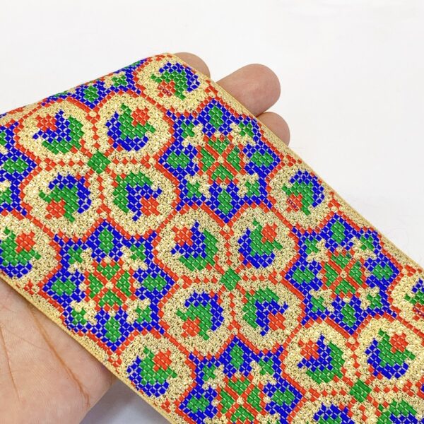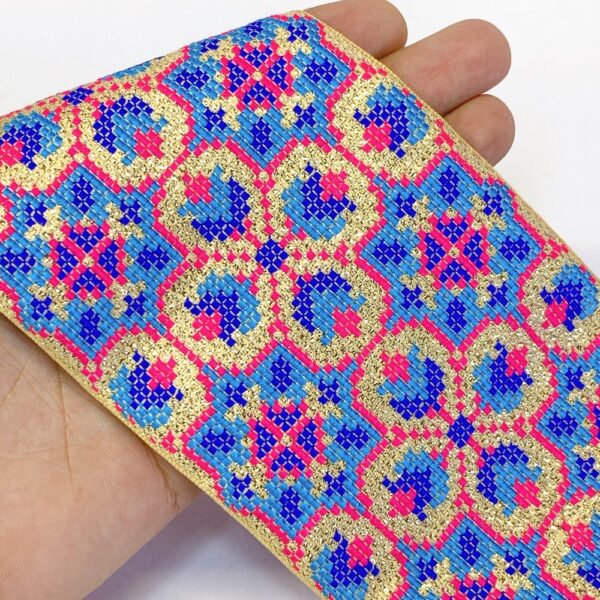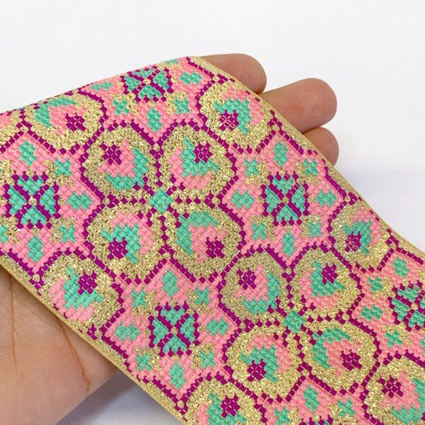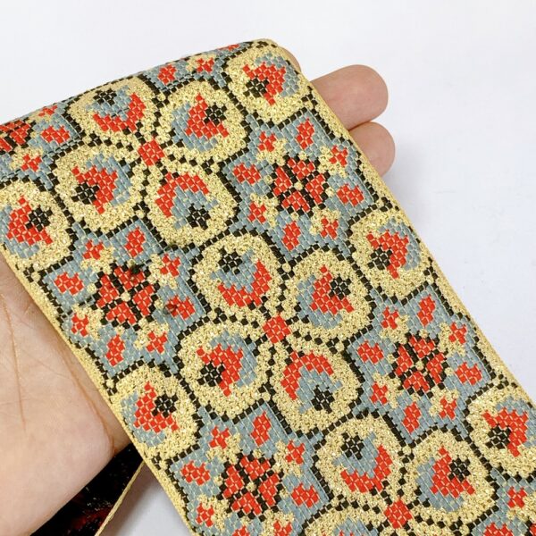 96 mm Colorful Cross stitch Jacquard Lace With Jari Work