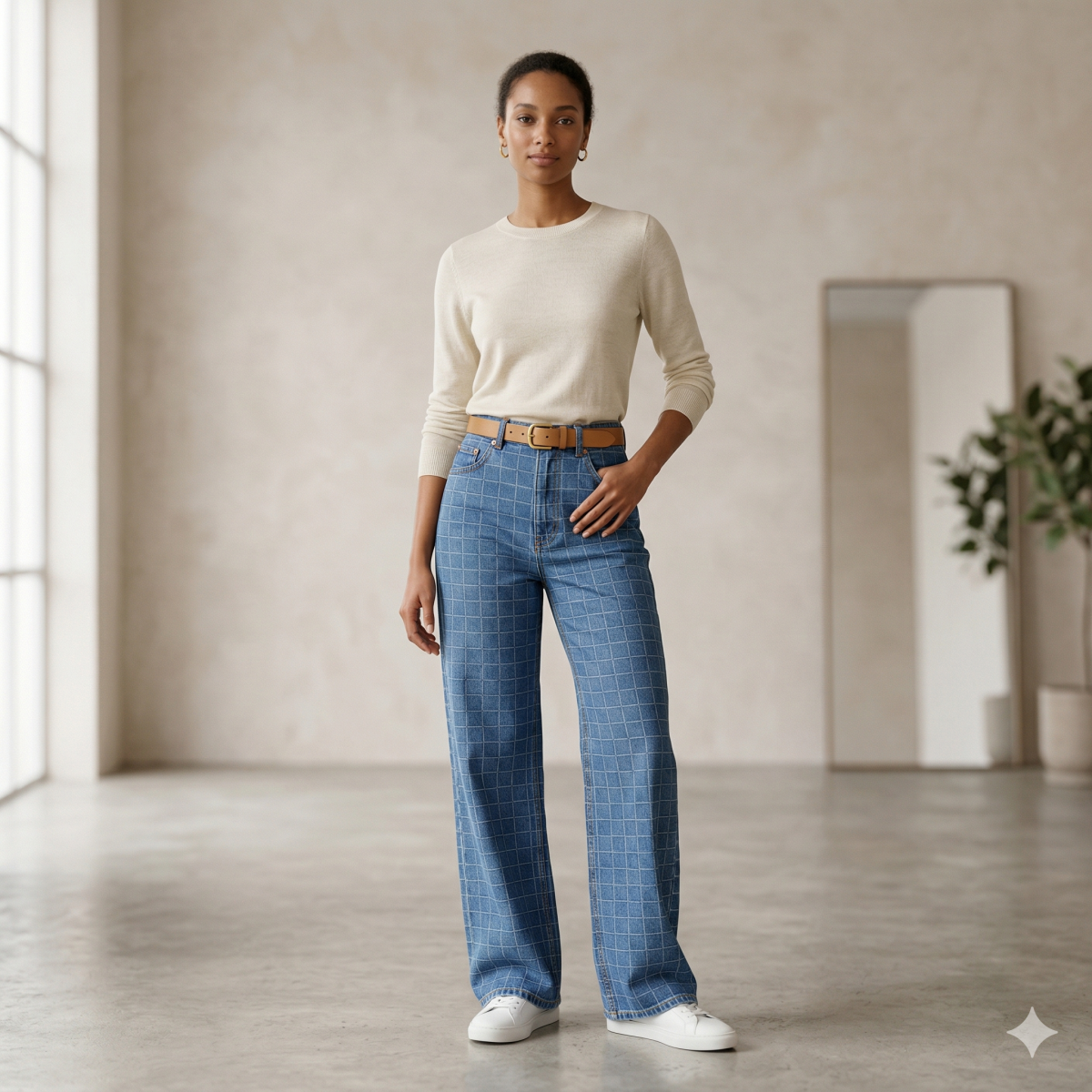A clean and classic windowpane check pattern on a medium blue denim base. This design is timeless and versatile for almost any project. Best For: Men?s denim shirts, casual trousers, or even table runners.