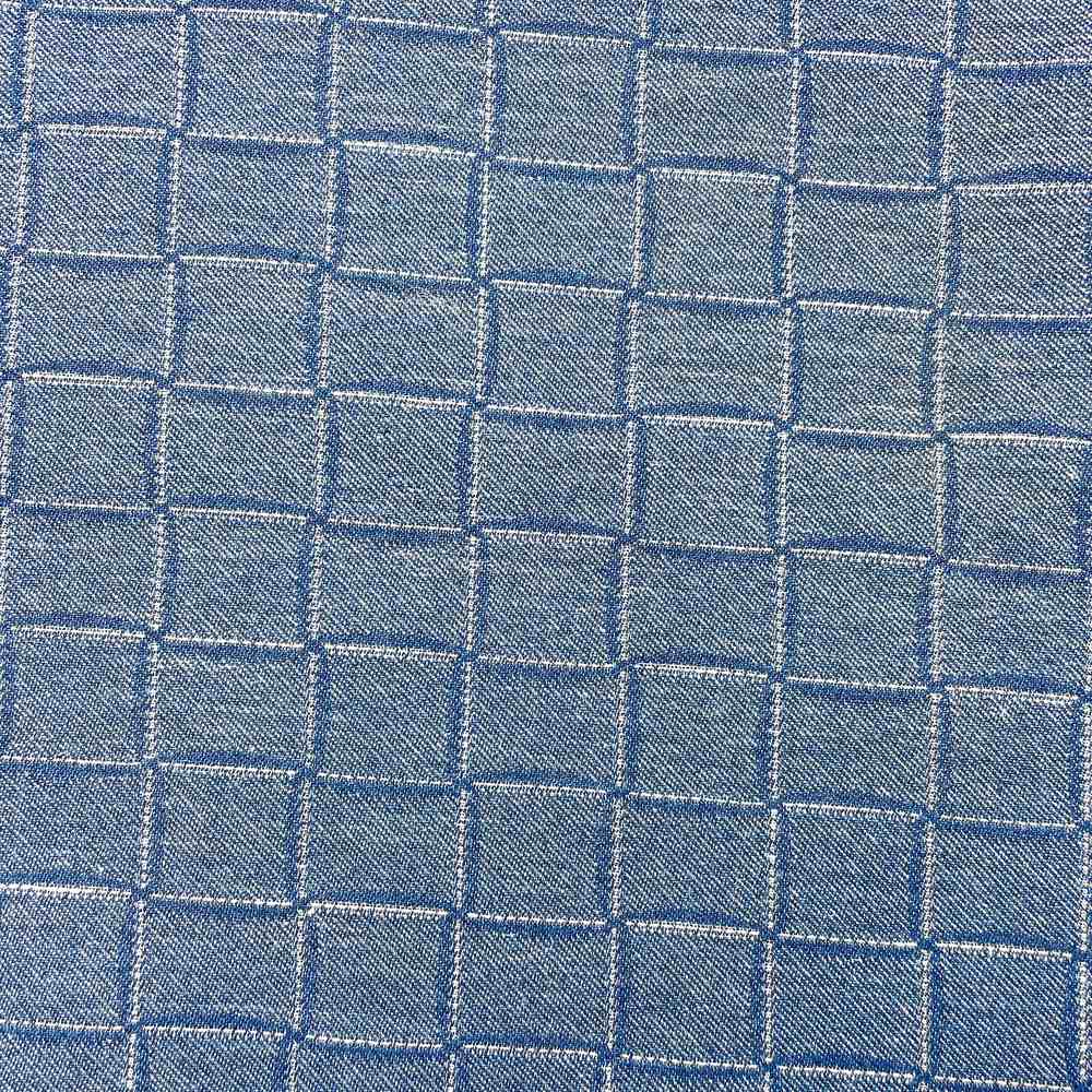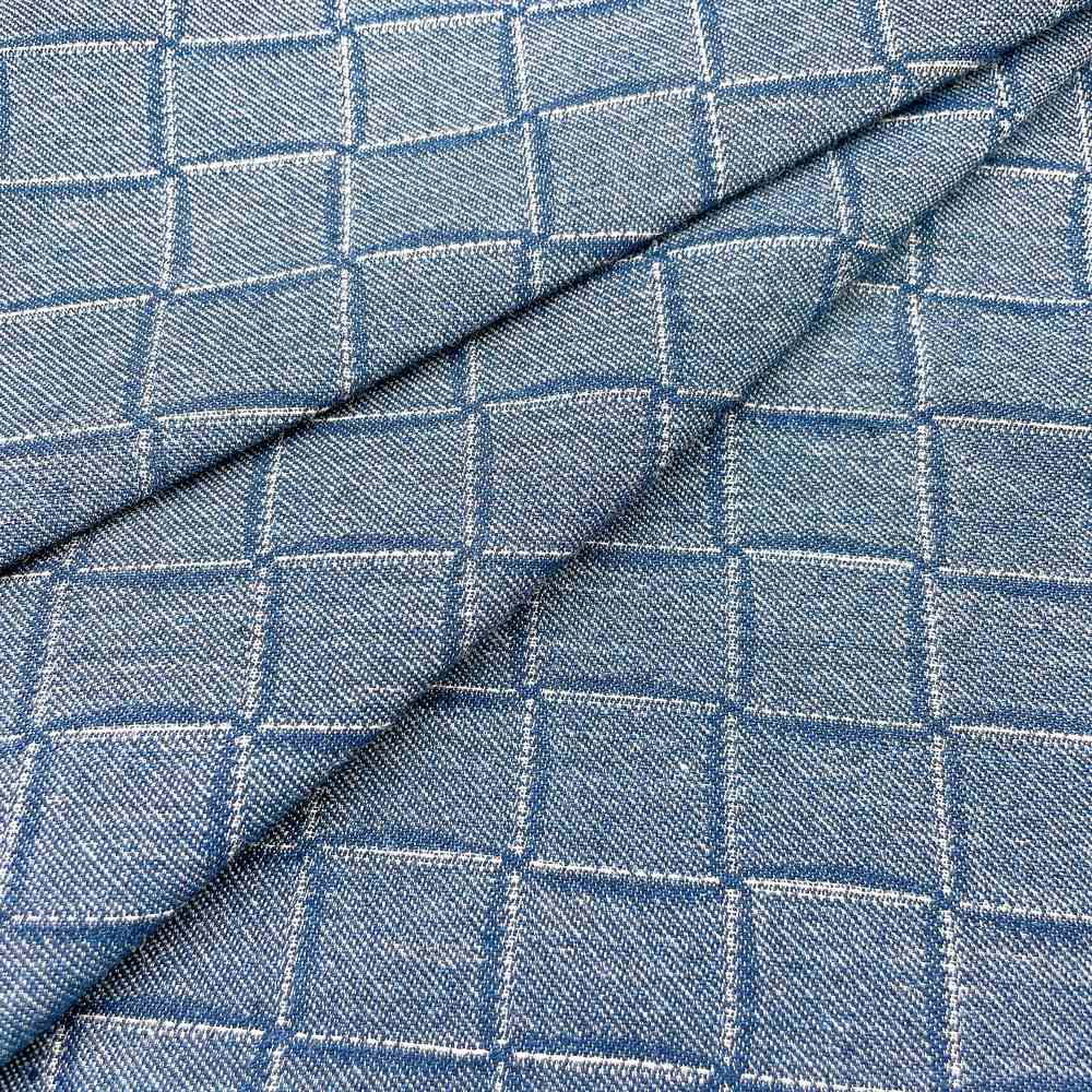 9oz Blue Windowpane Check Pattern Jacquard Denim Fabric - 1.00 meters