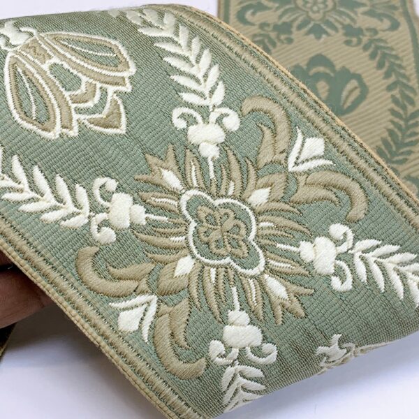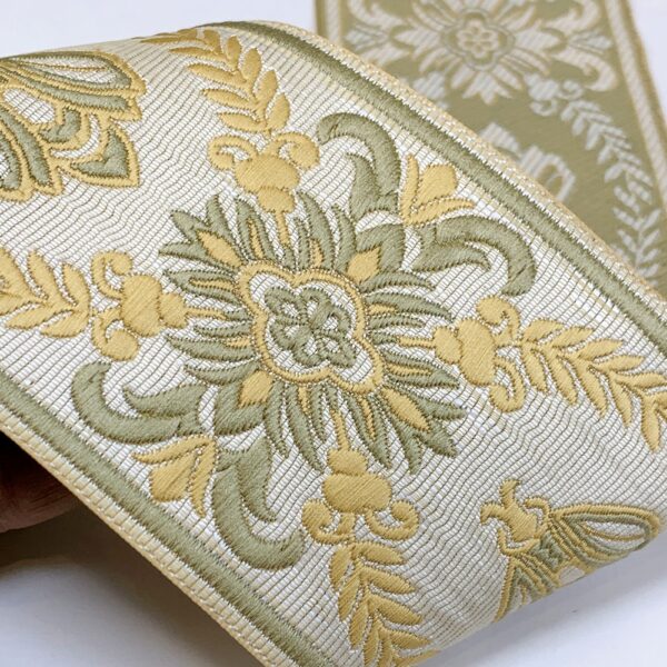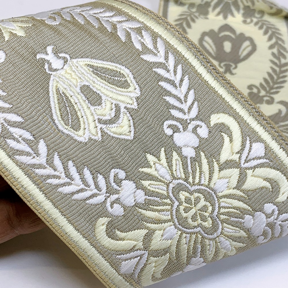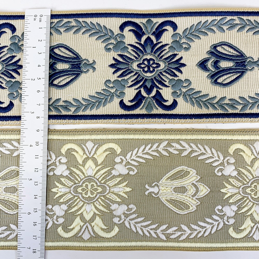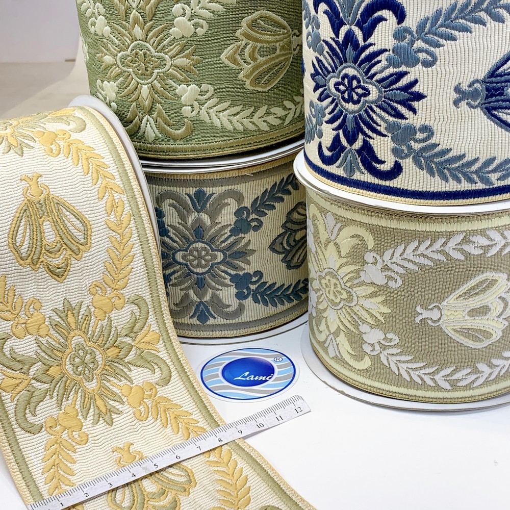 Add a touch of elegance with this ornate tapestry tapes featuring regal floral motifs and intricate bee Design. Crafted with premium weaving techniques, this 90mm-wide trim is perfect for upholstery, home d?cor, and fashion embellishments. Available in a variety of rich color combinations to enhance your creative projects.