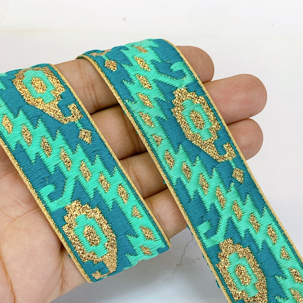 30mm Designer Jacquard Lace With Golden Zari Thread Work - 9.00 meters