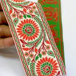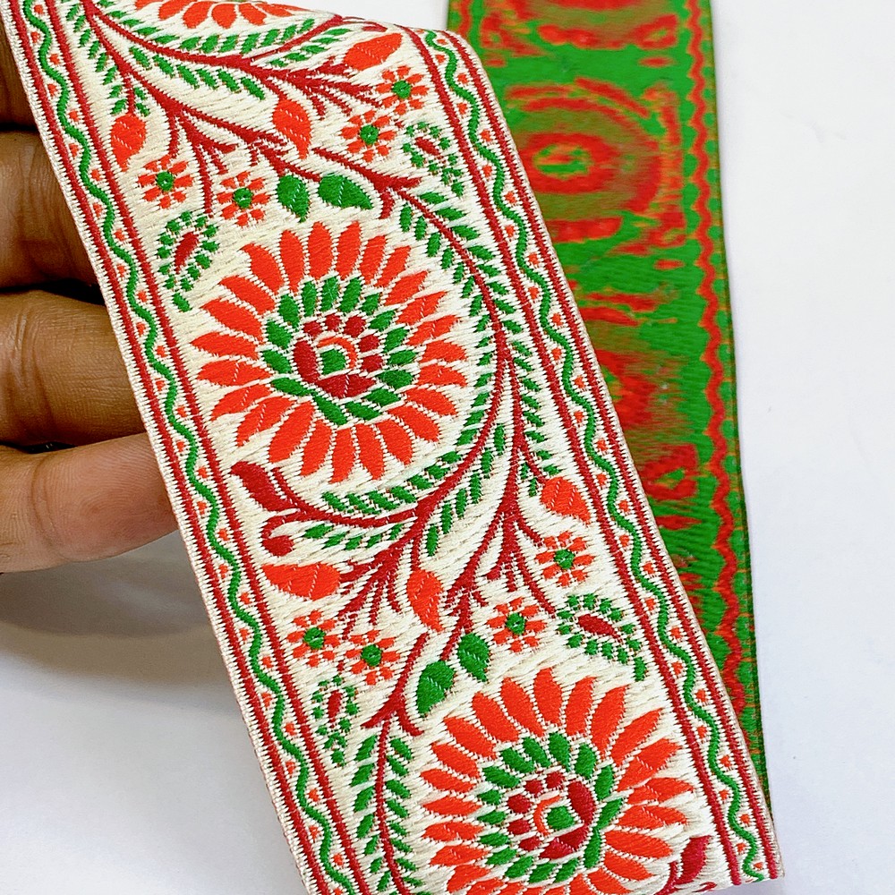 55mm Premium Floral Woven Jacquard Ribbon | Sunflower Motif Ethnic Trim | 2.2-Inch Multi-Color Jacquard Border for Garments - 09.00 Meters