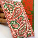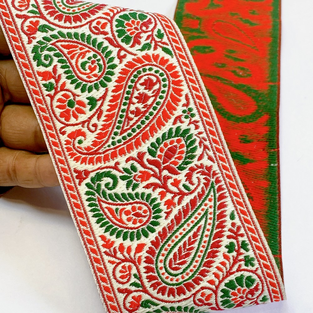 74mm Premium Woven Jacquard Paisley Ribbon | High-Density Ethnic Trim | Paisley Border for Garments and Accessories - 09.00 Meters