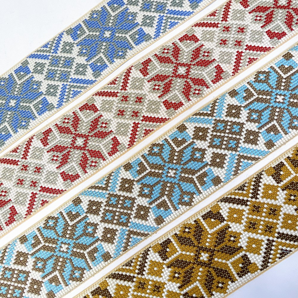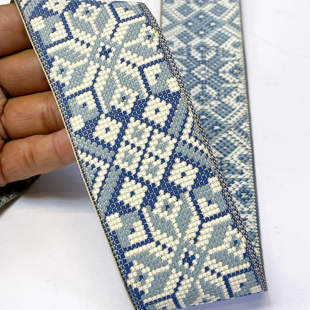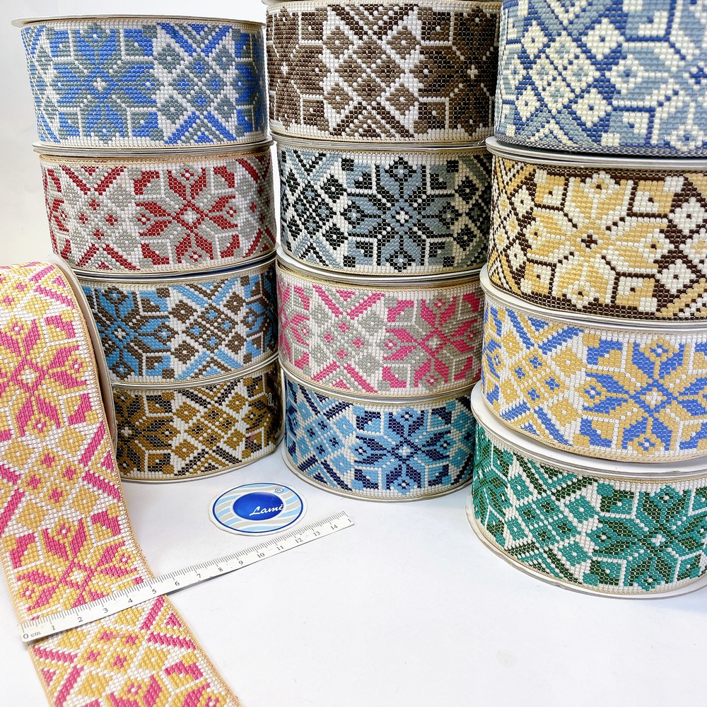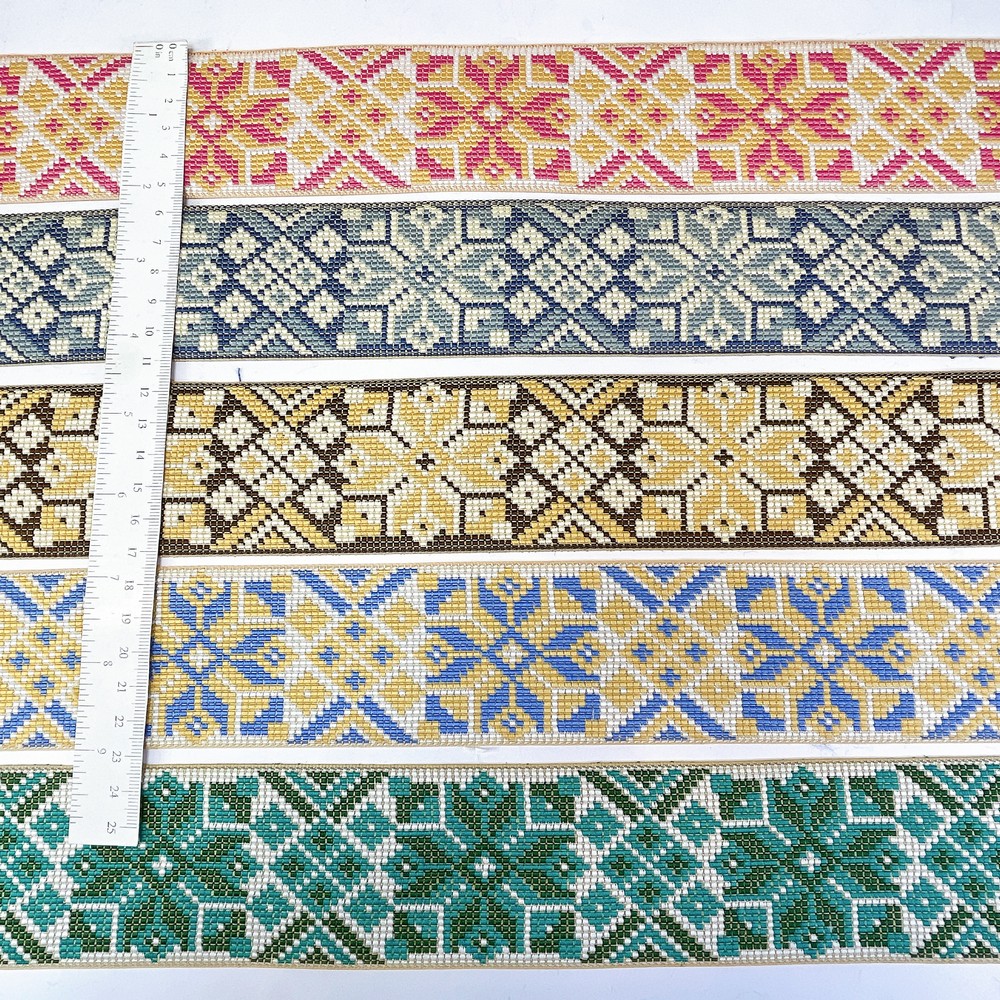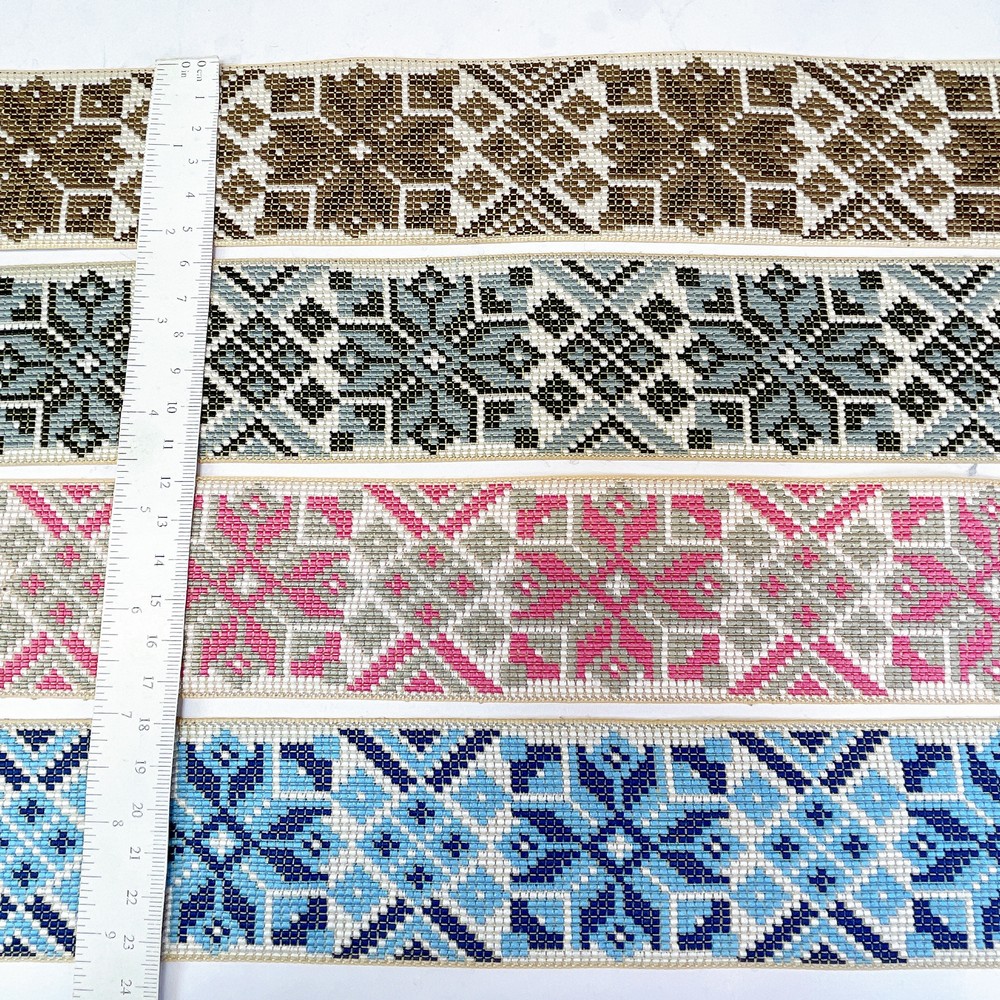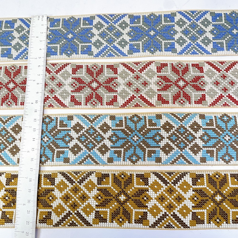 52mm Premium Cross-Stitch Jacquard Ribbon – Ethnic Geometric Border Lace for Garments & Crafts - 09.00 Meters