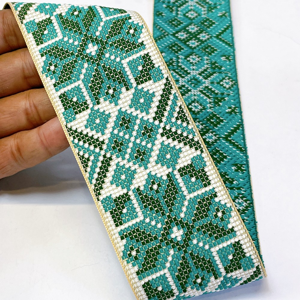 52mm Premium Cross-Stitch Jacquard Ribbon – Ethnic Geometric Border Lace for Garments & Crafts - 09.00 Meters