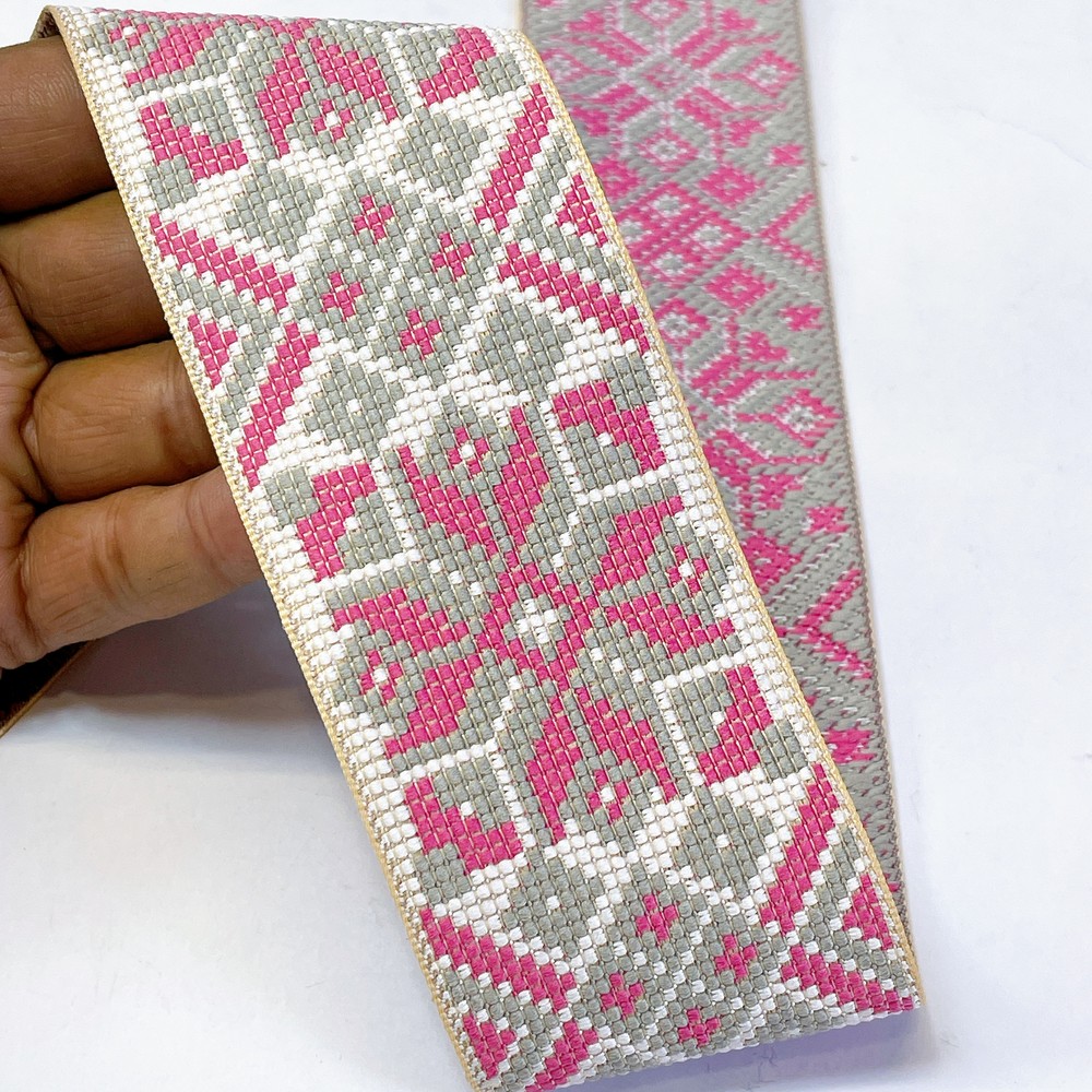 52mm Premium Cross-Stitch Jacquard Ribbon – Ethnic Geometric Border Lace for Garments & Crafts - 09.00 Meters