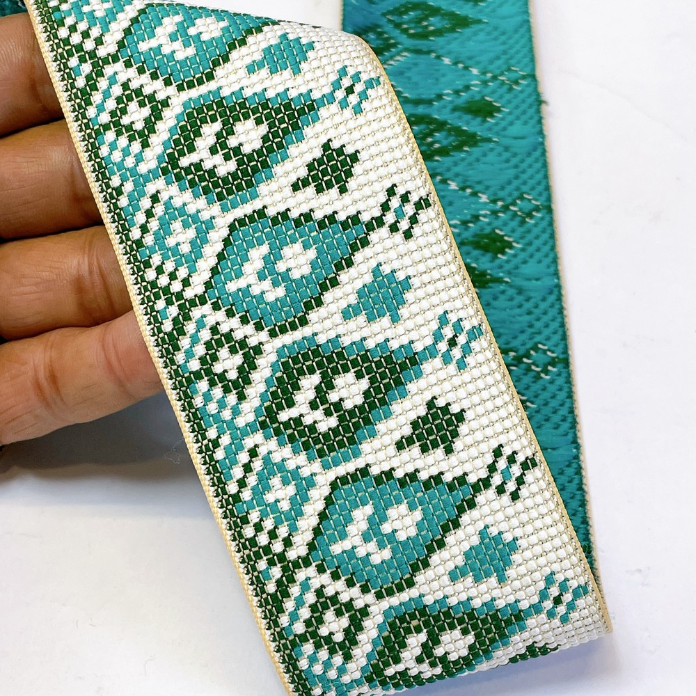 52mm Premium Cross-Stitch Jacquard Ribbon – Ethnic Geometric Border Lace for Garments & Crafts - 09.00 Meters