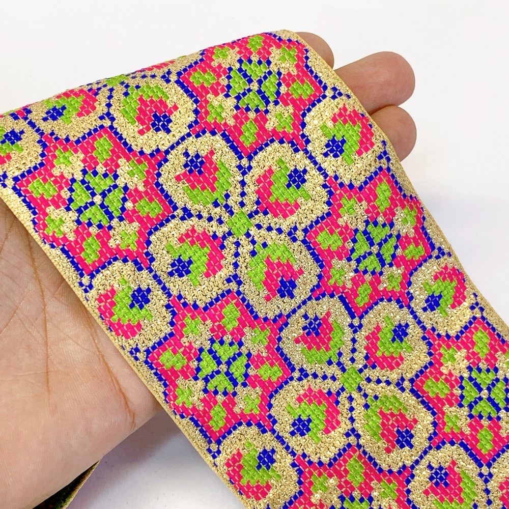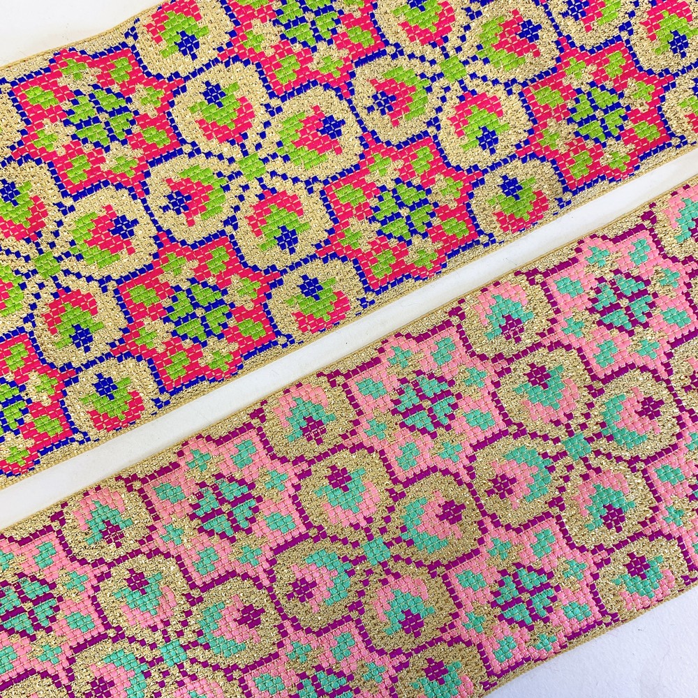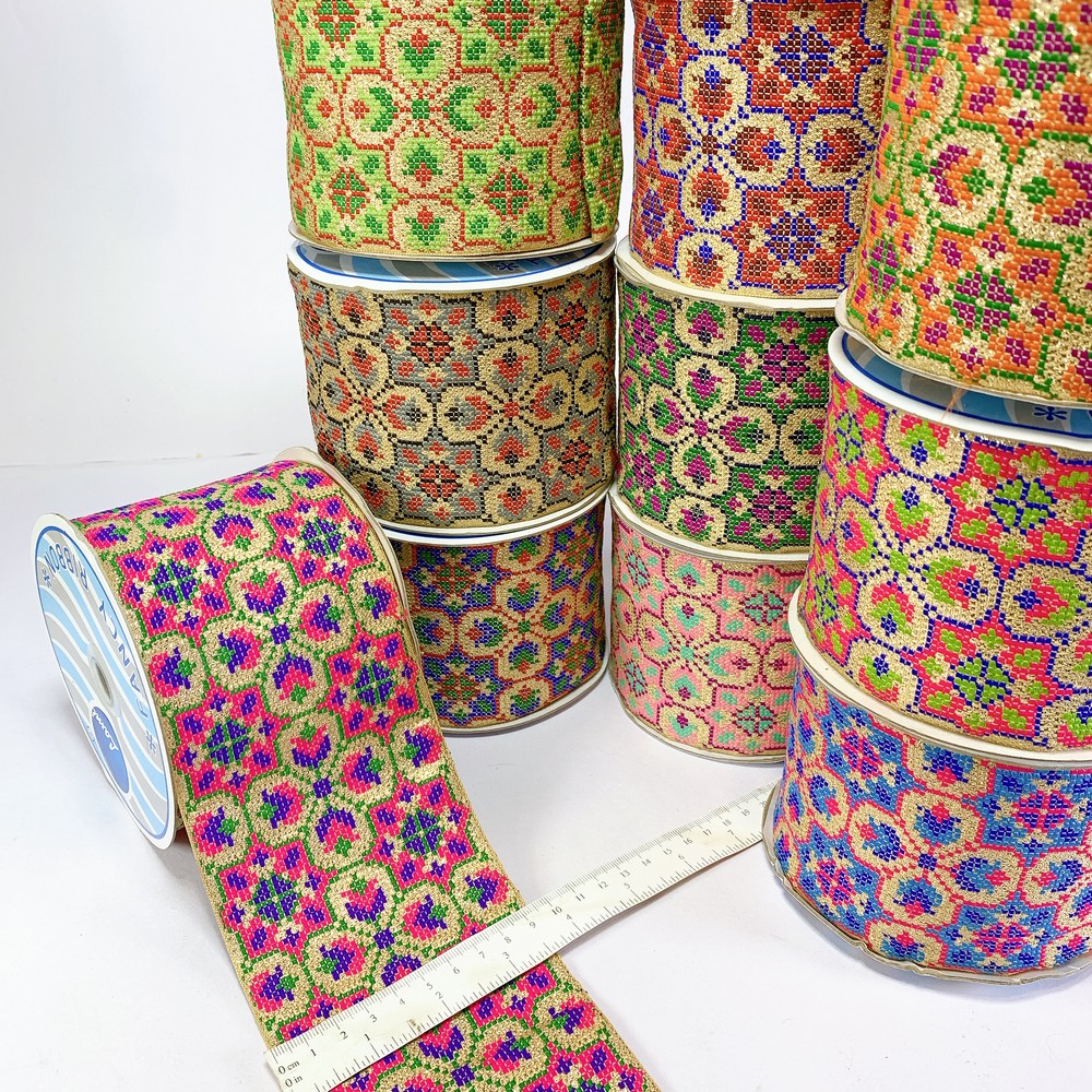 Add a touch of elegance with our Designer Cross Stitch Jacquard Ribbon. Showcasing intricate cross-stitch patterns, this high-quality ribbon is perfect for enhancing garments, crafts, and d?cor. Durable and versatile, it?s ideal for all creative projects.