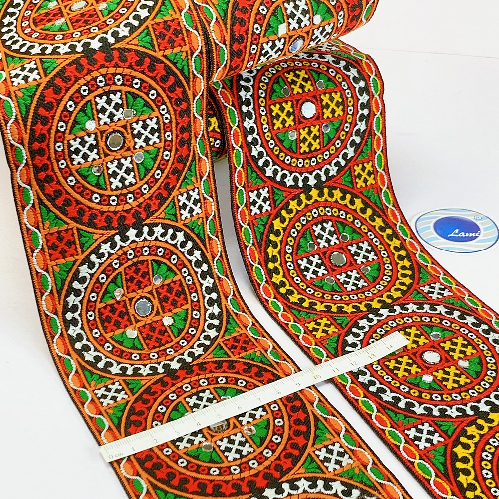 100mm Kutchi Design Jacquard Lace With Mirror Work - 9.00 meters