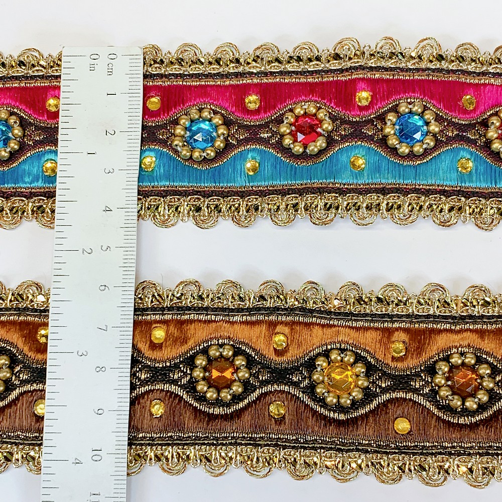 45mm Designer Jacquard Lace With Stone Work - 9.00 meters
