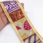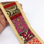 Material and Texture: Khichdi Multicolour Jacquard Lace is crafted from high-quality materials using jacquard weaving techniques. The jacquard weave gives it a luxurious texture with a raised pattern that adds depth and interest to the lace. Color and Design: True to its name, Khichdi Multicolour Jacquard Lace features a vibrant array of colors woven together seamlessly. The Multicolour design creates a visually appealing pattern that can incorporate various hues and shades in a harmonious blend. This makes it versatile for use in a wide range of garments and crafts. Pattern and Detailing: The lace typically boasts intricate detailing due to the jacquard weaving process. Patterns can vary from floral motifs to geometric shapes or abstract designs, all intricately woven into the lace fabric. The detailing is often precise and adds a touch of elegance to any project it is used in. Versatility and Use: Khichdi Multicolour Jacquard Lace is highly versatile and suitable for a variety of applications. It can be used as edging or trim on clothing such as dresses, blouses, or skirts, adding a decorative element. Crafters also use it for embellishing accessories like bags or creating unique home decor items. Durability and Care: Due to its quality craftsmanship and material, Khichdi Multicolour Jacquard Lace is durable and holds up well to regular use and washing. Care instructions typically recommend gentle washing methods to preserve its colors and intricate weave. Aesthetic Appeal: Overall, Khichdi Multicolour Jacquard Lace is prized for its aesthetic appeal, combining vivid colors, intricate patterns, and a luxurious texture. It adds a distinctive touch to any fashion or craft project, making it a popular choice among designers and artisans alike.